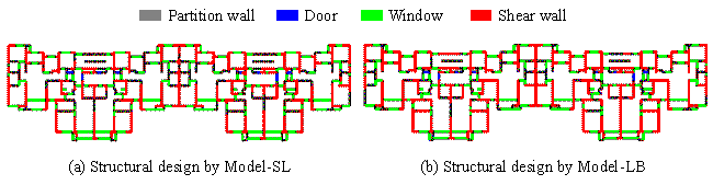 (4) The case study of a typical shear-wall structure discovers that, compared with the design by a conventional supervised learning method, the design by the proposed method satisfactorily resembles that by design engineers whilst meeting key code-specified requirements.