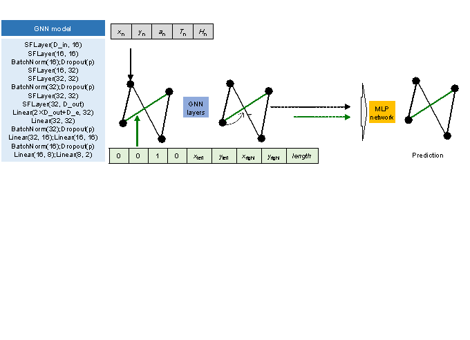 where H represents the building height, Hn represents the normalized building height, and Hmax represents the reference value for normalization, which is taken as 100 m. The design conditions are considered by embedding the normalized an, Tn and Hn into the node and edge features, as listed in Table 1. Considering the graph representation Graph-PSW-PW-DW in Table 1 as an example, the original node and edge features are [xn, yn] and [1, 0, 0, 0, xleft, yleft, xright, yright, length], respectively, and the node and edge features after embedding the design conditions are [xn, yn, an, Tn, Hn] and [1, 0, 0, 0, xleft, yleft, xright, yright, length, an, Tn, Hn], respectively. This study discusses the following four design condition combination scenarios. Notably, the training processes of these four scenarios are identical, with their distinctions arising from the extent, to which they considered the design conditions. GNN-DC-0: Design conditions are not considered. GNN-DC-1: Only the design condition of structure height is considered. GNN-DC-2: Two design conditions of the structural height and PGA of the DBE are considered. GNN-DC-3: All three design conditions (the PGA of the DBE, characteristic ground period, and building height) are considered. 3.3. GNN Model and DatasetZhao et al. [3] thoroughly examined various GNN model architectures suitable for the graph edge representation method and ultimately identified the GNN-EP-4 model as the top-performing option. Therefore, the GNN-EP-4 model proposed by Zhao et al. [3] is used as the fundamental neural network architecture, as shown in Figure 5. The meanings of the parameters within the neural network architecture shown in Figure 5 align with those outlined in Table 3 by Zhao et al. [3]. Furthermore, the arrangement of the shear walls in the structure is independent of the angle and position of the structure in the drawing. Therefore, a data augmentation method consistent with the research by Zhao et al. [3], which considers the rigid-body translation, flipping, and rotation of the shear wall structure, was adopted in this study. Specifically, the upside-down flipping (two cases), counterclockwise rotation with a modulus of 90∼ (four cases), up or down translation with a modulus of 2 m and a range of 0每20 m (21 cases), and left or right translation with a modulus of 2 m and a range of 0每20 m (21 cases) are included in the data augmentation method, which is theoretically equivalent to expanding the data amount by 3528 times (2 ℅ 4 ℅ 21 ℅ 21 = 3528) [3]. The data augmentation method is embedded in the training process of the neural network. During each iteration of the neural-network training process, each data is randomly subjected to the above four transformations to achieve data augmentation. The engineering goal of this study is to design shear wall layouts, which is consistent with that of the research by Zhao et al. [3]. Therefore, the L1 loss function (mean absolute error) [27] from Equation (3) by Zhao et al. [3] is adopted as the loss function for the neural network in this study. Appendix A compares the effects of three commonly used loss functions, and also shows that the L1 loss function is optimal. The datasets of shear wall structures used in this study are collected from several well-known architectural design institutes in China, and all the designs are executed by experienced engineers. For this study, we employ the dataset from the study by Zhao et al. [3] as the foundation, supplemented with new additions. This study divides 338 shear wall structure data into a test set (comprising 50 data) and a training set (comprising 288 data). Among the test set, 30 data are identical to the 30 data in the test set by Zhao et al. [3], which belong to three different design groups. Retaining the same data in the test set allows for a convenient comparison between the shear wall layout design results obtained using the method proposed in this study and those derived from the method proposed by Zhao et al. [3]. Figure 5 GNN model [3]: 4. Discussion4.1. Evaluation MethodLiao et al. [2], Zhao et al. [3, 14, 28], and Fei et al. [15] showed that an intersection over union (IoU)-based indicator can better judge the similarity between the shear wall layout designed using the deep learning method and that designed by engineers. However, when it is necessary to comprehensively evaluate the influence of different PGAs of the DBE, characteristic ground periods, and building heights on the mechanical and economic characteristics of the shear wall design results, it is not sufficient to consider only the similarity based on the IoU. The IoU metric focuses on the similarity of the spatial distribution of the engineer-designed and neural-network-designed shear wall layouts. The shear wall ratio (i.e., the ratio of shear walls to total walls) is a critical indicator that reflects the mechanical and economic characteristics of the shear wall design results. Liao et al. [13] showed that the similarity evaluation index of shear wall layout considering the shear wall ratio can better evaluate the comprehensive performance of the structure and reflect the impact of different design conditions on the shear wall layout. Therefore, this study proposes a comprehensive evaluation index ScoreDC that considers the similarity of the spatial distribution of the shear wall layout and the similarity of the shear wall ratio, as shown in Equations (4)每(12). The schematic diagram of ScoreDC is shown in Figure 6. The evaluation index ScoreDC used in this study is a comprehensive evaluation of the similarity of the shear wall layout and the similarity of the shear wall ratio. For the design results of the shear wall layout, the similarity of the shear wall layout and the similarity of the shear wall ratio are both important, so an index that combines the two similarities is necessary. ScoreDC is composed of two parts: the shear wall layout similarity index IoUSW