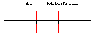 Figure 11. Final locations and sizes of BRBs after optimization.