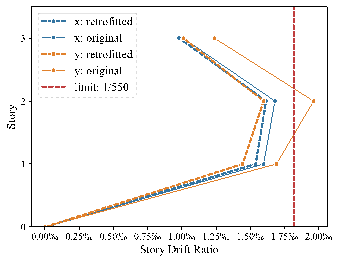 Story drift ratios before and after retrofitting |