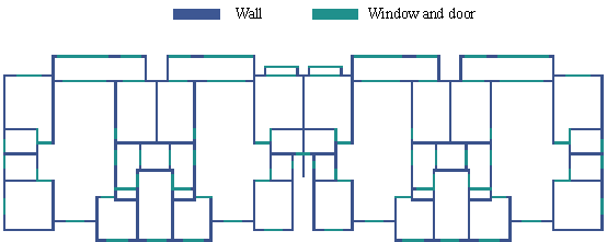 Figure 16. Comparison of structural schemes by different design scenarios. The results indicate that in Stage 1, significant optimization in the layout pattern of the shear walls was performed, resulting in an increase in the number of L-shaped and T-shaped walls and a preliminary reduction in material consumption. Further, Stage 2 optimization focused on specific dimensions, leading to a further decrease in material consumption. Compared to the traditional direct optimization method, both the empirical and the mechanical performance每material consumption evaluation methods showed notable improvements. The total material cost was reduced by 45.88 k CNY compared to the traditional method. Additionally, the empirical evaluation and mechanical performance results were similar to those obtained by design engineers, whereas the overall material cost decreased by approximately 47.04 k CNY. Finally, a time comparison was made on typical design scenarios. Based on the research conducted by senior engineers from several top design institutes in China [51] , the design process for a shear wall structure with an approximate floor area of 500 m2 requires approximately 20 h for preliminary design and 10 h for structural modeling. Furthermore, a significant amount of time is often spent on subsequent adjustments and optimization after the preliminary design. In contrast, the total time required by the proposed intelligent design system was about 1 h, resulting in an efficiency improvement of approximately 30 times. The time required for completing this design case are compared in Table 11. Moreover, the system can be implemented using natural language dialogues, which significantly reduces the learning threshold. Table 11. Comparison of design efficiency between different methods