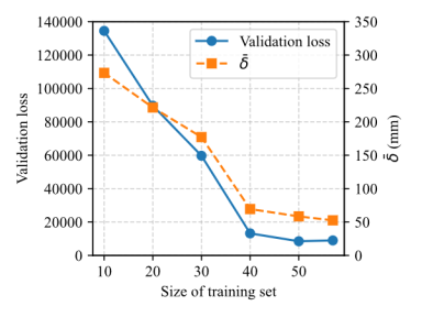 Figure B.2 Impact of training data size on prediction accuracy. The results indicate that when the training dataset exceeds 40 samples,