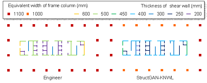 where 3.3 Fusion of different design featuresWhen designing component section sizes, engineers must comprehensively consider the structural layout and design conditions. Therefore, the proposed StructGAN-KNWL should fuse the input design drawing and design condition features. In this study, a straightforward implementation is adopted. The preprocessor is used to integrate the design drawing features and design condition features into an input tensor, which is then directly fed into the GAN. The experimental results in Section 5 demonstrate that the implementation is effective. Specifically, the seismic influential matrix