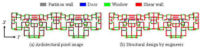 (2) The proposed structural optimization procedure is compatible with the input and output of GANs, facilitating an efficient optimization of the shear-wall layout, thereby automatically obtaining proxy labels that can satisfy the given design conditions.