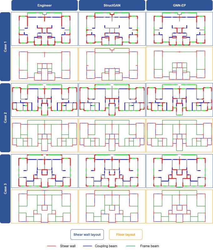 Appendix BThe design results of engineers, StructGAN based on pixel images, and the developed GNN-EP for all nine cases belonging to Group7-H1, Group7-H2, and Group8 are presented in Figures B.1–B.3, respectively. The layout and dimensions of beams and slabs are designed following Zhao et al. [33]. Figure B.1 Design results of engineers, StructGAN, and proposed GNN-EP-4 for Group7-H1 Figure B.2 Design results of engineers, StructGAN, and proposed GNN-EP-4 for Group7-H2 Figure B.3 Design results of engineers, StructGAN, and proposed GNN-EP-4 for Group8 References[1] CTBUH, Tall buildings in 2019: another record year for supertall completions, CTBUH Research, 2019. https://www.skyscrapercenter.com/research/CTBUH_ResearchReport_2019YearInReview.pdf [2] R. Perez, A. Carballal, J.R. Rabuñal, M.D. García-Vidaurrázaga, O.A. Mures, Using AI to simulate urban vertical growth, CTBUH Journal, Issue III, 2019. https://global.ctbuh.org/resources/papers/download/4212-using-ai-to-simulate-urban-vertical-growth.pdf [3] J.R. Qian, Z.Z. Zhao, X.D. Ji, L.P. Ye, Design of tall building structures, Third Edition, China Architecture & Building Press, 2018, ISBN: 9787112216840. (in Chinese) [4] Y. Zhang, C. Mueller, Shear wall layout optimization for conceptual design of tall buildings, Eng. Struct. 140 (2017) 225–240, https://doi.org/10.1016/j.engstruct.2017.02.059 [5] S. Sotiropoulos, G. Kazakis, N.D. Lagaros, Conceptual design of structural systems based on topology optimization and prefabricated components, Comput. Struct. 226 (2020) 106136, http://doi.org/10.1016/J.COMPSTRUC.2019.106136 [6] X. Zhou, L. Wang, J. Liu, G. Cheng, D. Chen, P. Yu, Automated structural design of shear wall structures based on modified genetic algorithm and prior knowledge, Autom. Constr. 139 (2022) 104318, https://doi.org/10.1016/j.autcon.2022.104318 [7] S. Singaravel, J. Suykens, P. Geyer, Deep convolutional learning for general early design stage prediction models, Adv. Eng. Inform. 42 (2019) 100982, https://doi.org/10.1016/j.aei.2019.100982 [8] P.N. Pizarro, L.M. Massone, F.R. Rojas, R.O. Ruiz, Use of convolutional networks in the conceptual structural design of shear wall buildings layout, Eng. Struct. 239 (2021) 112311, https://doi.org/10.1016/j.engstruct.2021.112311 [9] P.N. Pizarro, L.M. Massone, Structural design of reinforced concrete buildings based on deep neural networks, Eng. Struct. 241 (2021) 112377, https://doi.org/10.1016/j.engstruct.2021.112377 [10] W.J. Liao, X.Z. Lu, Y.L. Huang, Z. Zheng, Y.Q. Lin, Automated structural design of shear wall residential buildings using generative adversarial networks, Autom. Constr. 132 (2021) 103931, https://doi.org/10.1016/j.autcon.2021.103931 [11] X.Z. Lu, W.J. Liao, Y. Zhang, Y.L. Huang, Intelligent structural design of shear wall residence using physics-enhanced generative adversarial networks, Earthq. Eng. Struct. Dyn. 51 (2022) 1657–1676, https://doi.org/10.1002/eqe.3632 [12] W.J. Liao, Y.L. Huang, Z. Zheng, X.Z. Lu, Intelligent generative structural design method for shear wall building based on “fused-text-image-to-image” generative adversarial networks, Expert Syst. Appl. 210 (2022) 118530, https://doi.org/10.1016/j.eswa.2022.118530 [13] W.L. Hamilton, Graph representation learning, synthesis lectures on artificial intelligence and machine learning, 14 (2020) 1–159, https://doi.org/10.2200/S01045ED1V01Y202009AIM046 [14] Y. Ma, J. Tang, Deep learning on graphs, Cambridge University Press, 2021, https://doi.org/10.1017/9781108924184 [15] M.M. Bronstein, J. Bruna, Y. LeCun, A. Szlam, P. Vandergheynst, Geometric deep learning: going beyond Euclidean data, IEEE Signal Process. Mag. 34 (2017) 18–42, https://doi.org/10.1109/MSP.2017.2693418 [16] Z. Chen, F. Chen, L. Zhang, T. Ji, K. Fu, L. Zhao, et al., Bridging the gap between spatial and spectral domains: A survey on graph neural networks, 2021, https://doi.org/10.48550/arXiv.2107.10234 [17] Z. Wu, S. Pan, F. Chen, G. Long, C. Zhang, P.S. Yu, A comprehensive survey on graph neural networks, IEEE Trans. Neural Netw. Learn. Syst. 32 (2020) 4–24, https://doi.org/10.1109/TNNLS.2020.2978386 [18] K.H. Chang, C.Y. Cheng, Learning to simulate and design for structural engineering, In: PMLR 119: Proceedings of the 37th International Conference on Machine Learning, 2020 Jul 13–18, Online, 2020, pp. 1426–1436, https://doi.org/10.48550/arXiv.2003.09103 [19] P.J. Zhao, W.J. Liao, Y.L. Huang, X.Z. Lu, Intelligent beam layout design for frame structure based on graph neural networks, J. Build. Eng. 63 (2023) 105499, https://doi.org/10.1016/j.jobe.2022.105499 [20] N. Nauata, K.H. Chang, C.Y. Cheng, G. Mori, Y. Furukawa, House-GAN: Relational generative adversarial networks for graph-constrained house layout generation, In: ECCV 2020: 16th European Conference on Computer Vision, 2020 Aug 23–28, Glasgow, UK, Cham: Springer, 2020, pp. 162–177, https://doi.org/10.1007/978-3-030-58452-8_10 [21] N. Nauata, S. Hosseini, K.H. Chang, H. Chu, C.Y. Cheng, Y. Furukawa, House-GAN++: Generative adversarial layout refinement network towards intelligent computational agent for professional architects, In: CVPR 2021: Proceedings of the IEEE/CVF Conference on Computer Vision and Pattern Recognition, 2021 Jun 20–25, Nashville, TN, USA, IEEE, 2021, pp. 13632–13641, https://doi.org/10.1109/CVPR46437.2021.01342 [22] C. Málaga-Chuquitaype, Machine learning in structural design: an opinionated review, Front. Built Environ. 8 (2022) 815717, https://doi.org/10.3389/fbuil.2022.815717 [23] M. Breit, L. Huang, F. Lang, F. Ritter, A. Borrmann, Serious play: intuitive architectural conceptual de-sign with immediate structural feedback and economical and ecological performance predictions, In: 12th International Conference on Construction Applications of Virtual Reality, Taipei, 2012. https://publications.cms.bgu.tum.de/2012_Breit_CONVR.pdf [24] M. Mensinger, M. Breit, L. Huang, Approach to handle architectural flexibility requirements fo