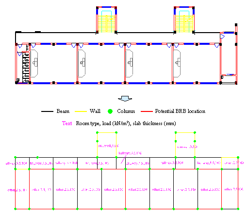 First, the intelligent generation method in Stage 1 was employed using the diffusion model to determine the potential BRB locations, as shown in Figure 9. Areas such as hallways, stairwells, and doorways were excluded from BRB placement to meet architectural requirements.